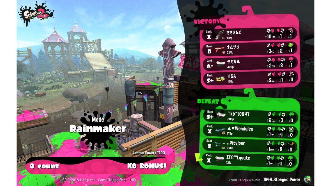 | Mode | Rainmaker - League Battle (Quad) | ||||||||||||||||||||||||||||||||||||||||