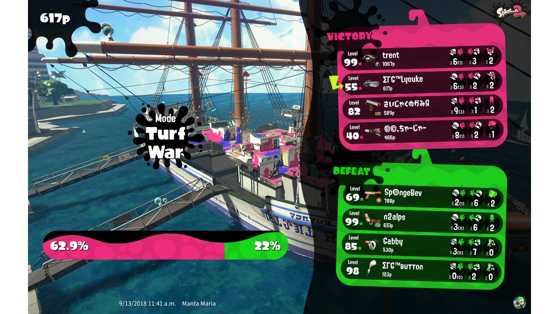| Mode | Turf War - Regular Battle | ||||||||||||||||||||||||||||||||||