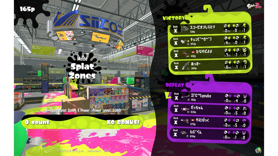 | Mode | Splat Zones - Ranked Battle | ||||||||||||||||||||||||||||||||||||||||