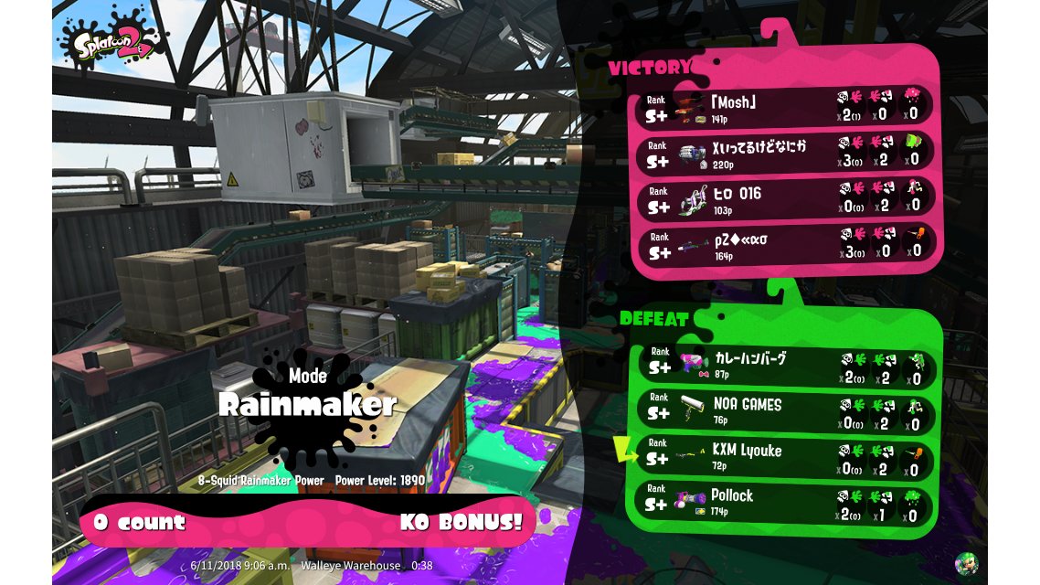 | Name | Weapon | Level | Rank | Inked | k+a/sp | k/d |