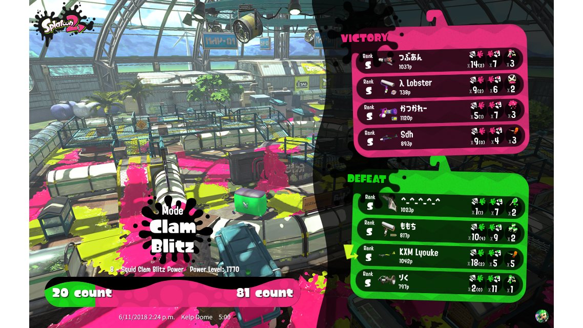 | Mode | Clam Blitz - Ranked Battle | |||||||||||||||||||||||||||||||
