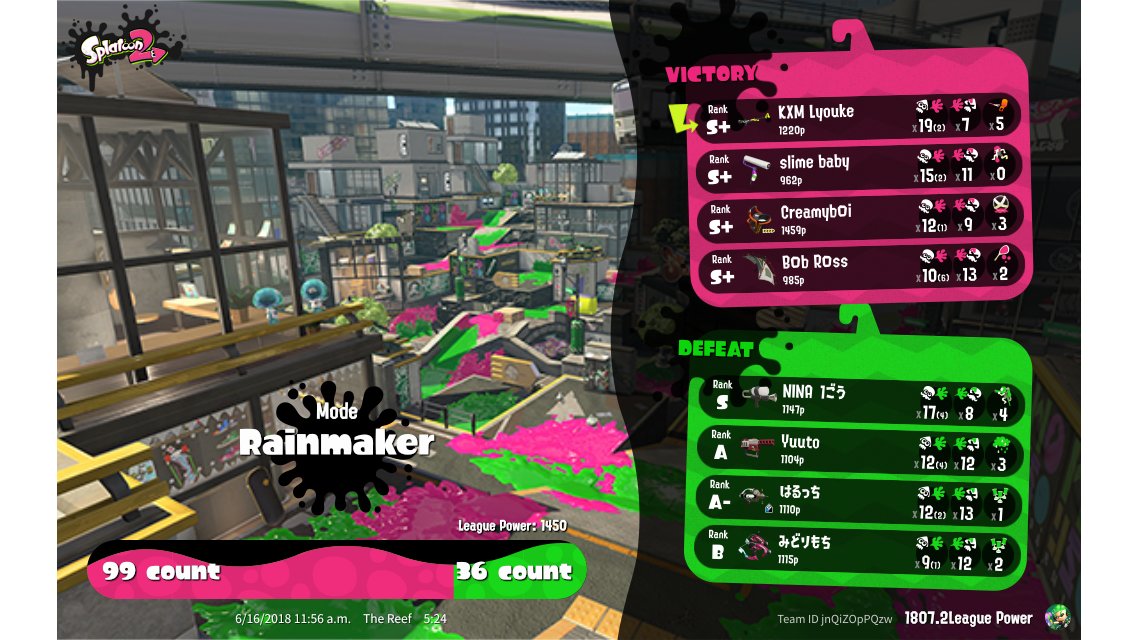 | Mode | Rainmaker - League Battle (Quad) | ||||||||||||||||||||||||||||
