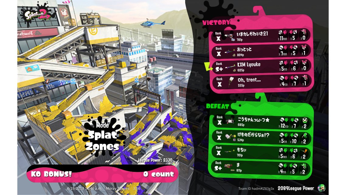 | Mode | Splat Zones - League Battle (Twin) | |||||||||||||||||||||||||||||||