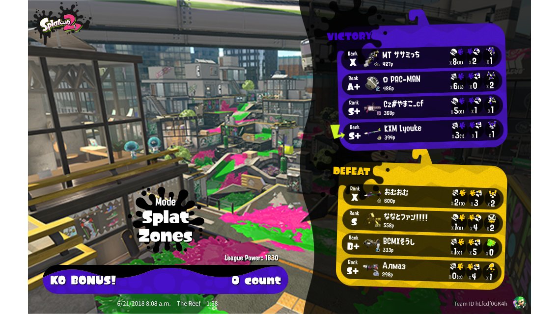 | Mode | Splat Zones - League Battle (Twin) | ||||||||||||||||||||||||||||||||||