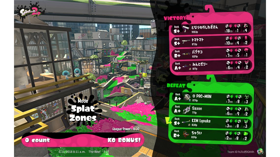 | Mode | Splat Zones - League Battle (Twin) | ||||||||||||||||||||||||||||||||||