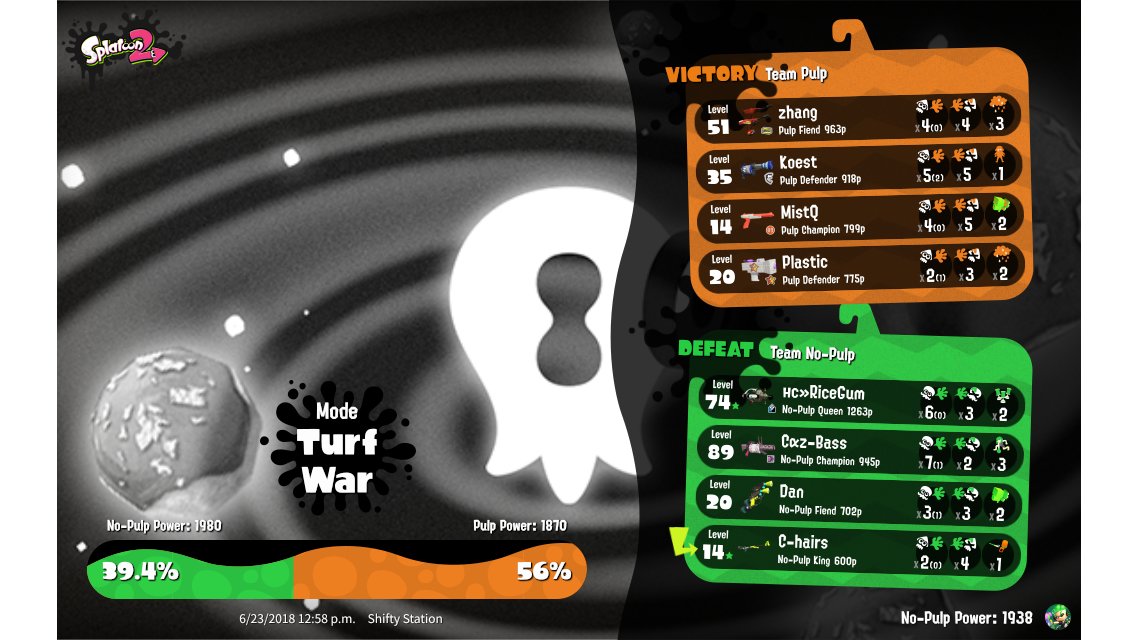 | Mode | Turf War - Splatfest (Solo) | |||||||||||||||||||||||||||||||||||||
