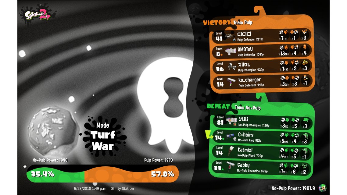 | Mode | Turf War - Splatfest (Team) | |||||||||||||||||||||||||||||||