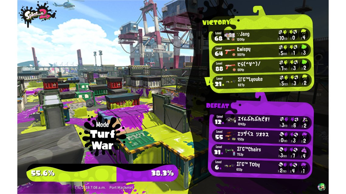 | Mode | Turf War - Regular Battle | ||||||||||||||||||||||||||||