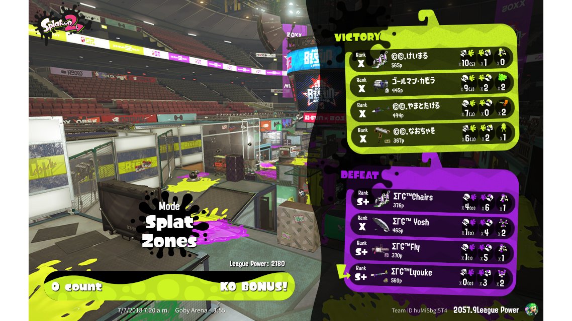 | Mode | Splat Zones - League Battle (Quad) | ||||||||||||||||||||||||||||