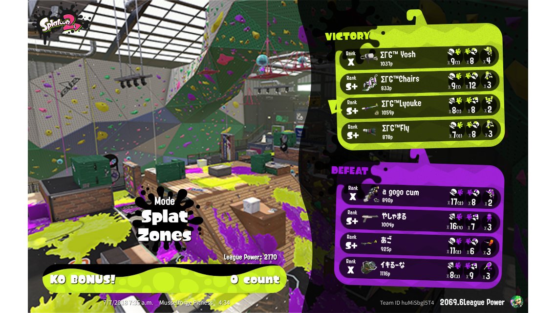 | Mode | Splat Zones - League Battle (Quad) | ||||||||||||||||||||||||||||