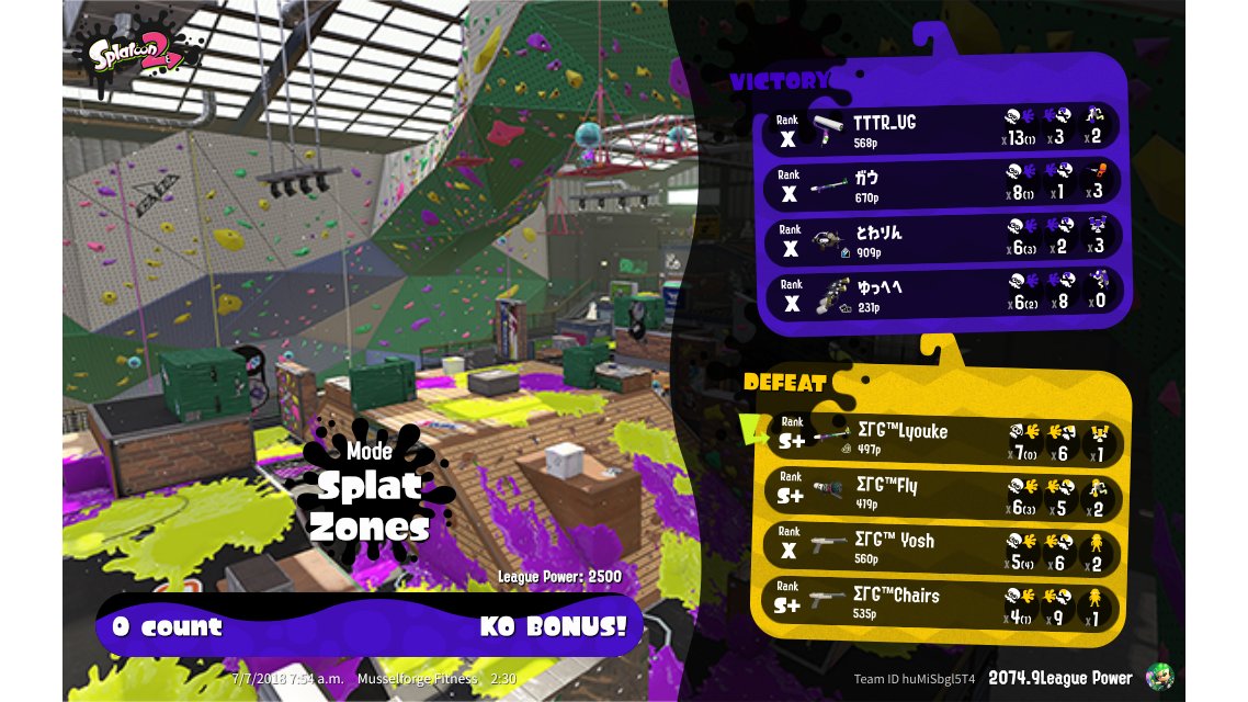| Mode | Splat Zones - League Battle (Quad) | ||||||||||||||||||||||||||||