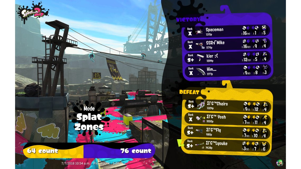 | Mode | Splat Zones - Private Battle | ||||||||||||||||||||||||||||