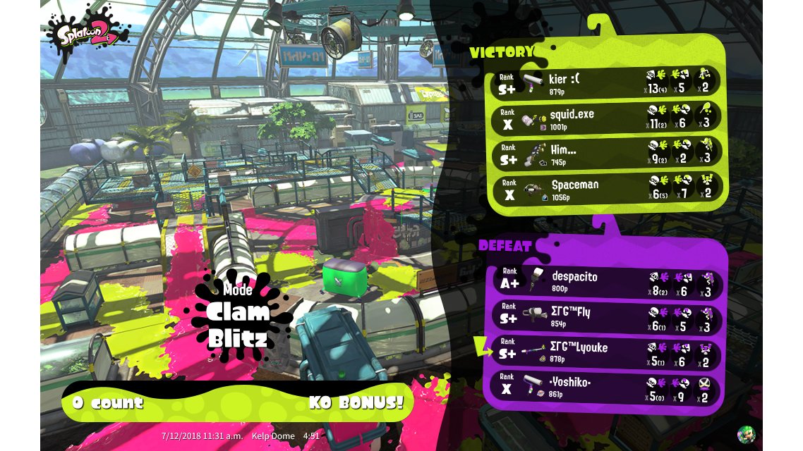 | Mode | Clam Blitz - Private Battle | ||||||||||||||||||||||||||||