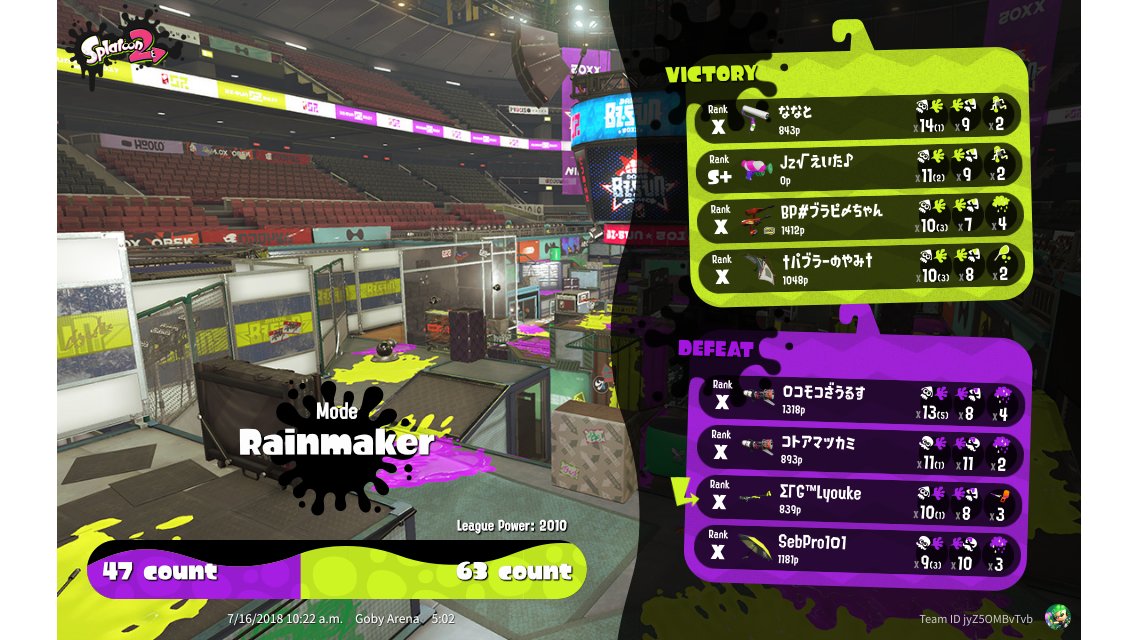 | Mode | Rainmaker - League Battle (Twin) | ||||||||||||||||||||||||||||