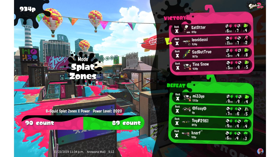 | Mode | Splat Zones - Ranked Battle | ||||||||||||||||||||||||||||||||||||||||