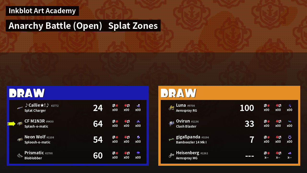 | Mode | Splat Zones - Anarchy Battle (Open) | ||