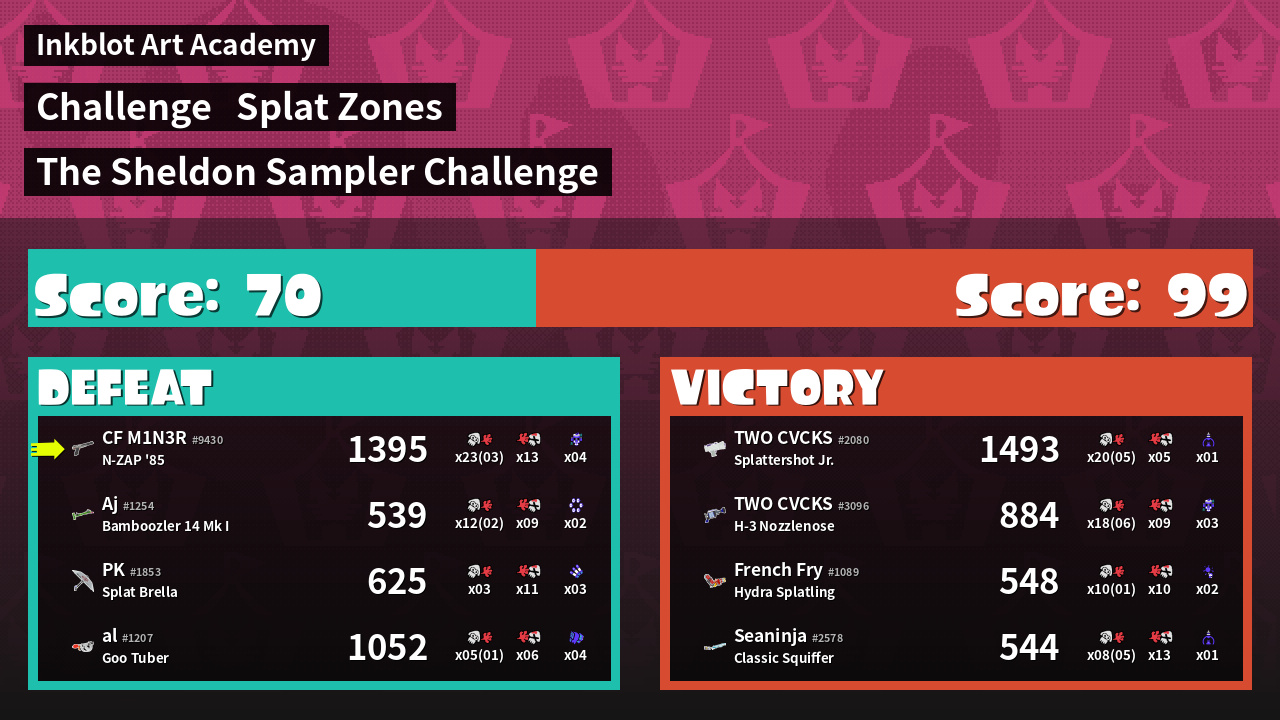 | Medals | #1 Overall Splatter #1 Splat Zone Inker #1 Splat Zone Guard | ||
