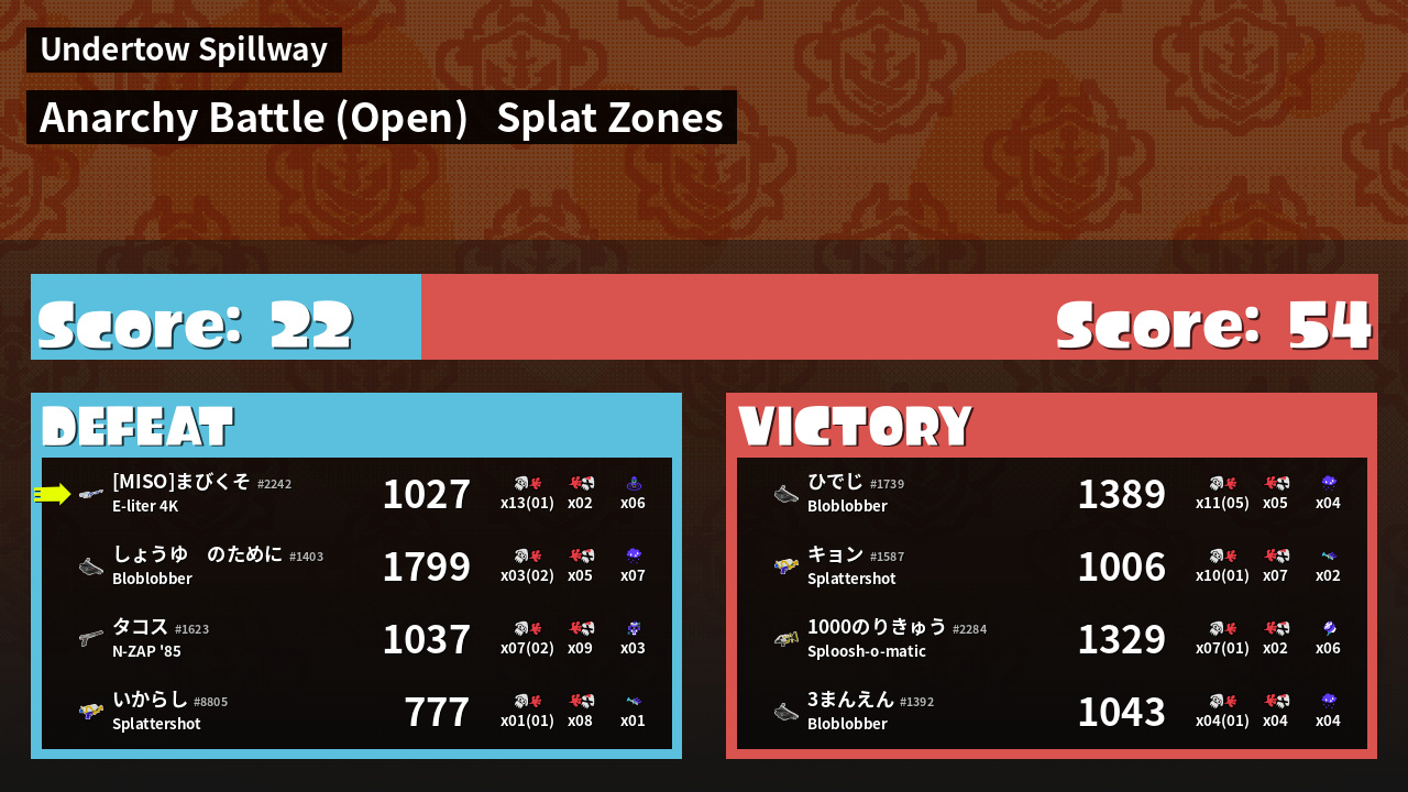 | Mode | Splat Zones - Anarchy Battle (Open) | ||