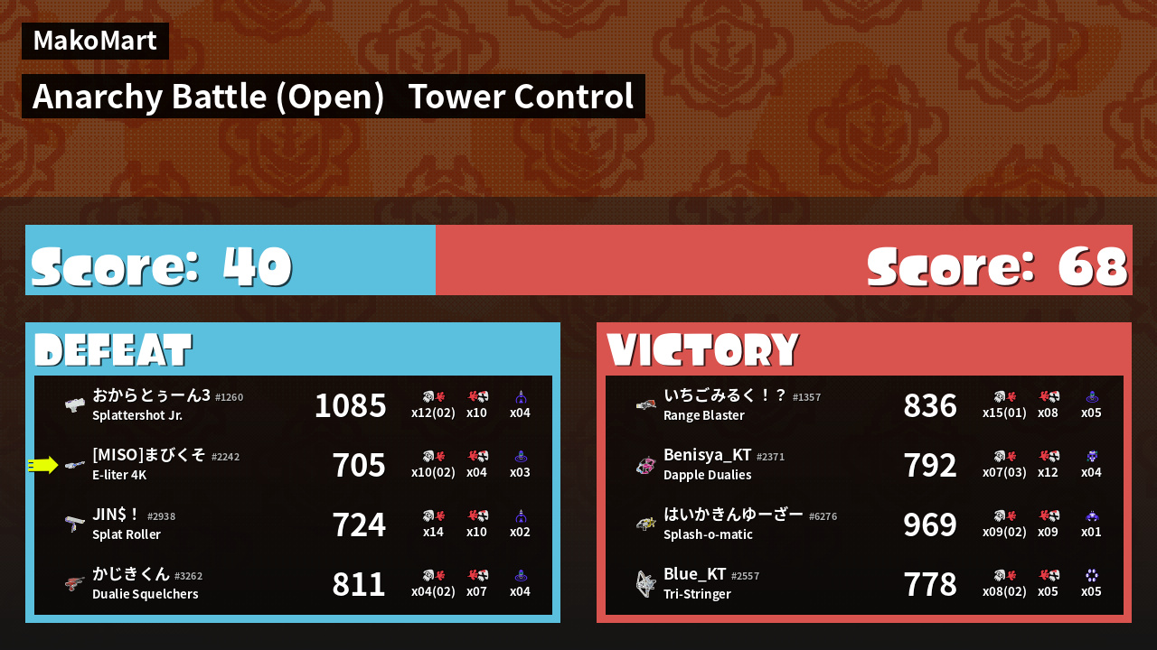 Results of まびくそ's Battle