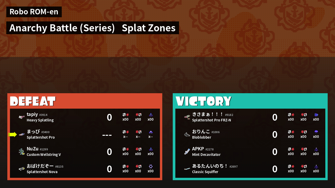 | Mode | Splat Zones - Anarchy Battle (Series) |