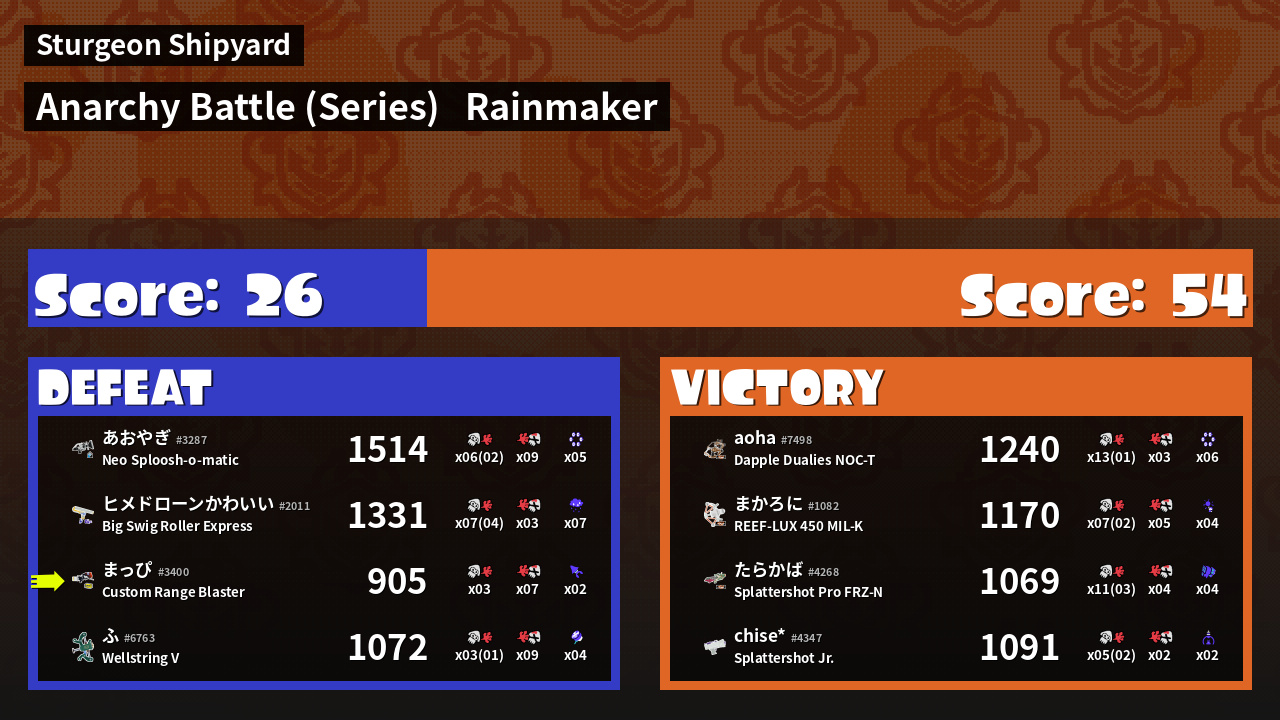 | Mode | Rainmaker - Anarchy Battle (Series) |