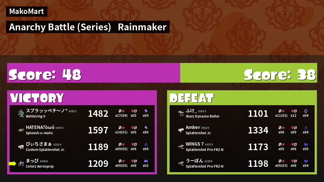 | Mode | Rainmaker - Anarchy Battle (Series) |