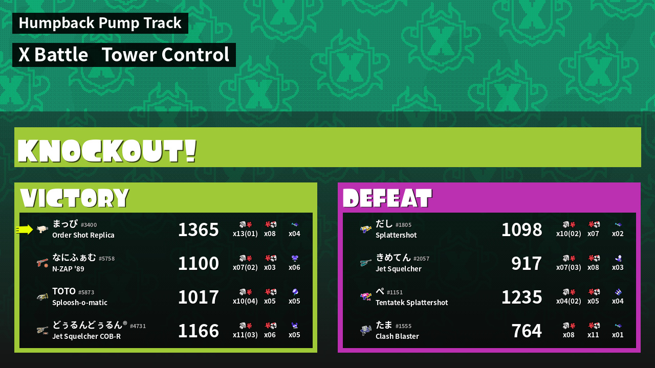 | Medals | #1 Overall Splatter #1 Turf Inker #1 Enemy Splatter |