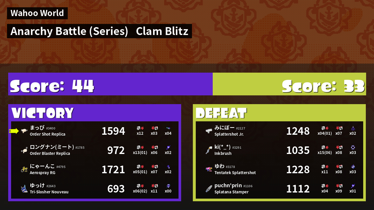 | Mode | Clam Blitz - Anarchy Battle (Series) |