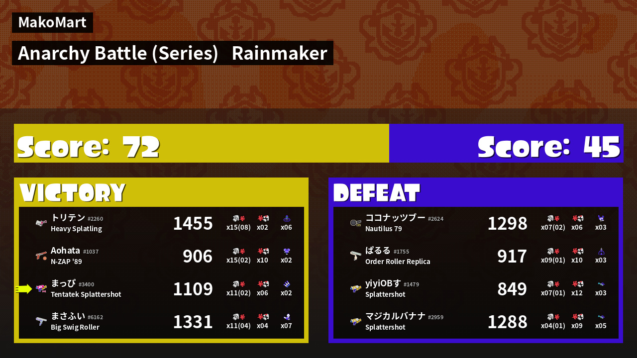 | Mode | Rainmaker - Anarchy Battle (Series) |