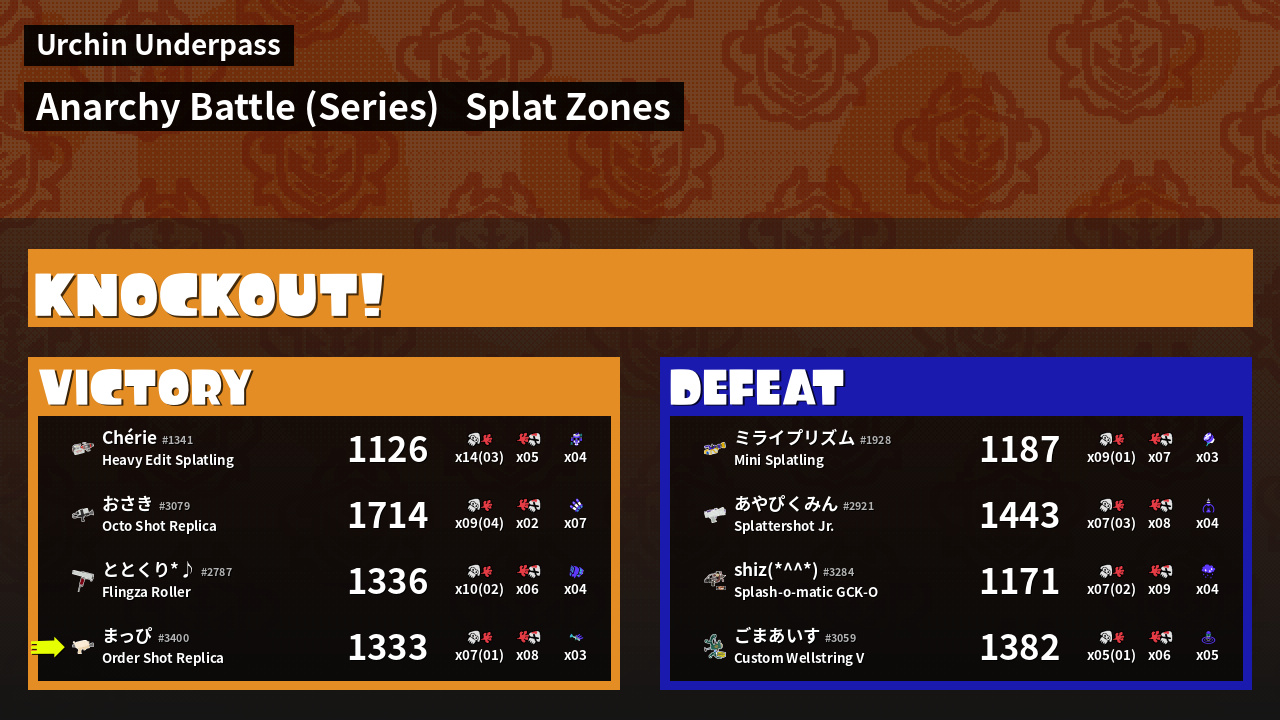 | Mode | Splat Zones - Anarchy Battle (Series) |