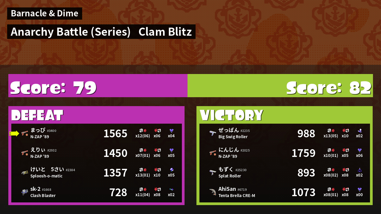 | Mode | Clam Blitz - Anarchy Battle (Series) |