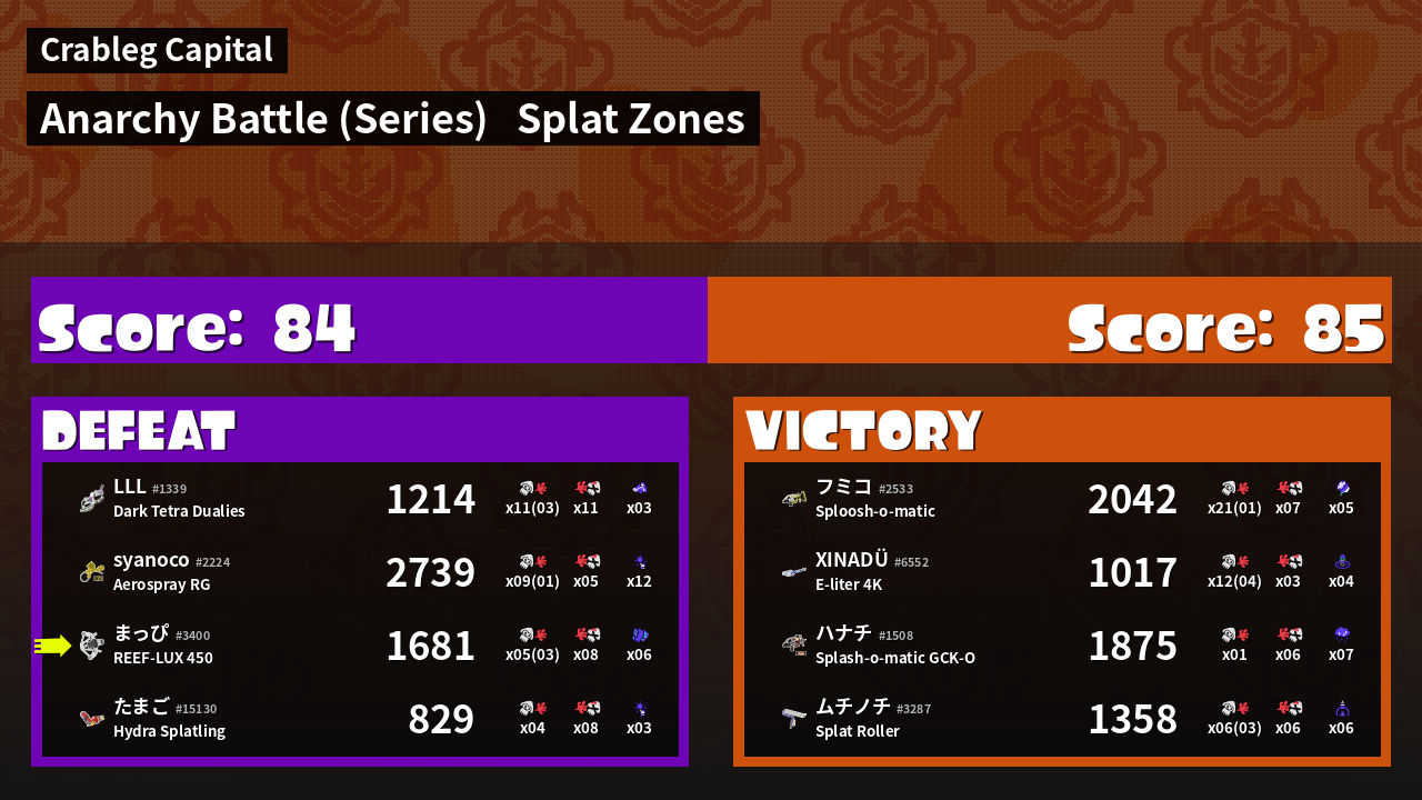 | Mode | Splat Zones - Anarchy Battle (Series) |