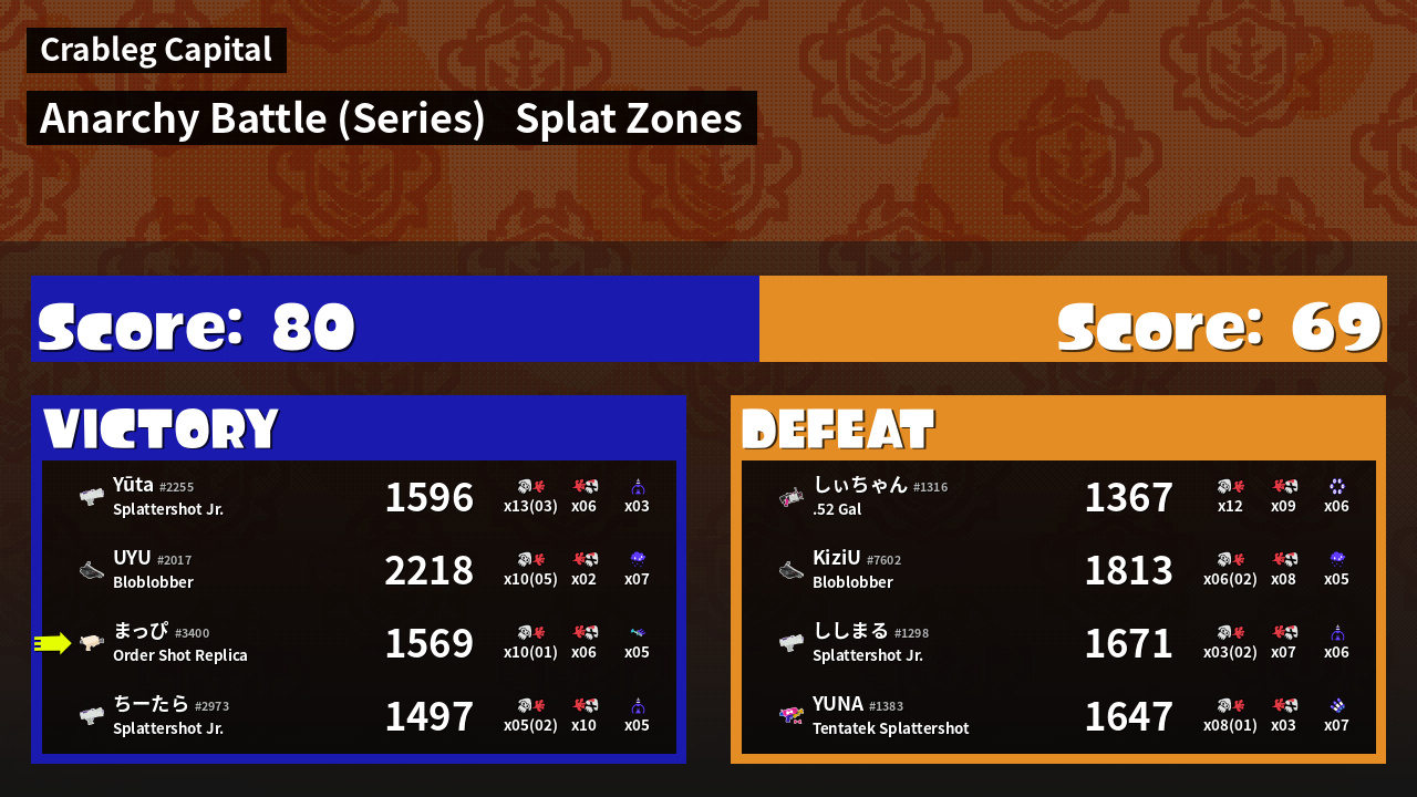 | Mode | Splat Zones - Anarchy Battle (Series) |