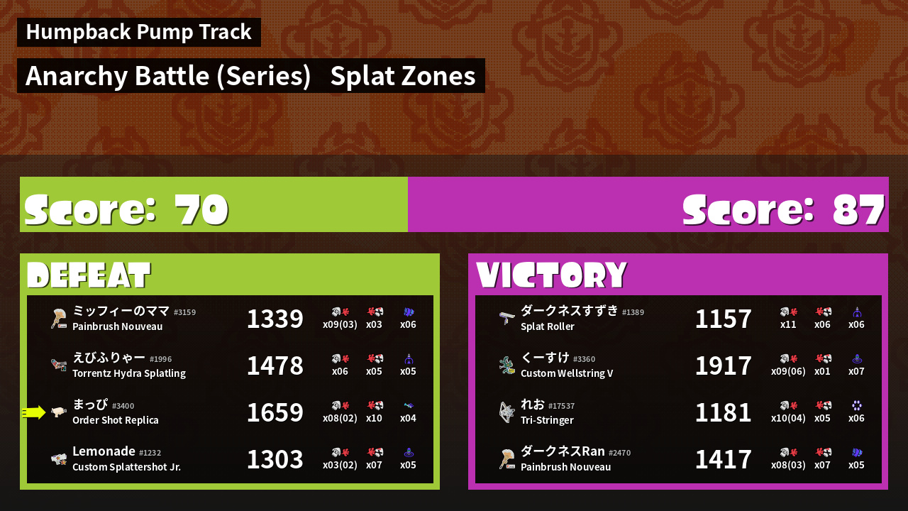 | Mode | Splat Zones - Anarchy Battle (Series) |