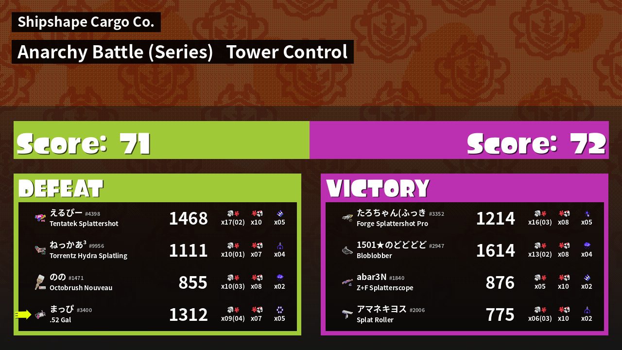 | Mode | Tower Control - Anarchy Battle (Series) |