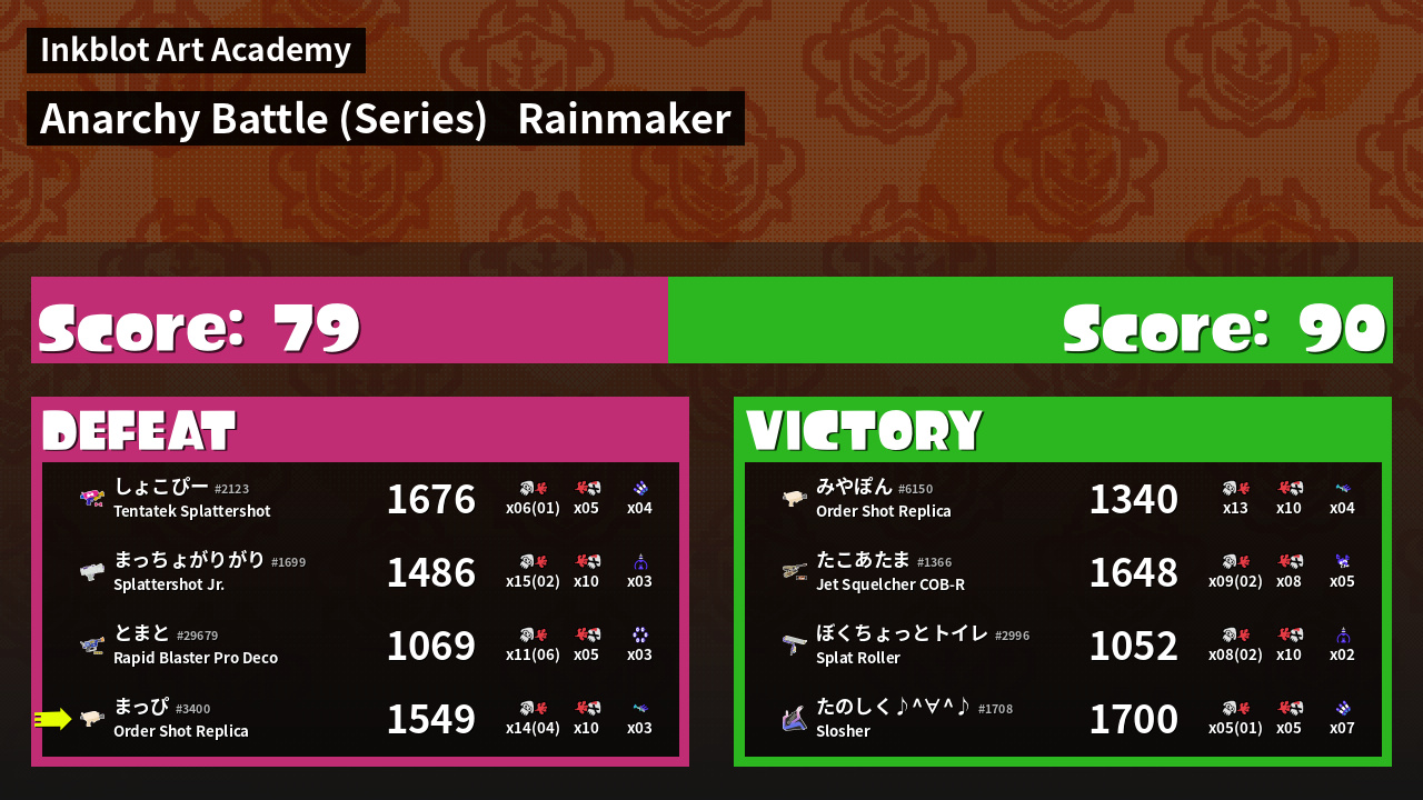 | Mode | Rainmaker - Anarchy Battle (Series) |