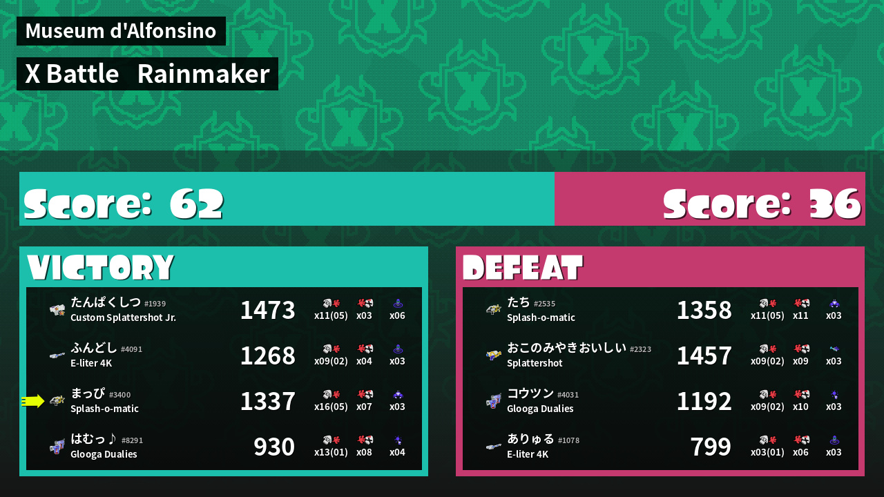 | Medals | #1 Overall Splatter #1 Splat Assister #1 Rainmaker Stopper |
