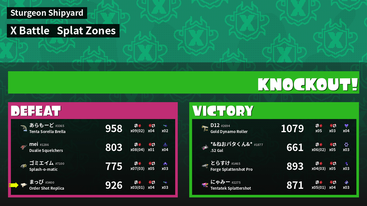 | Medals | #1 Ground Traveler #2 Splat Zone Inker #2 Turf Inker |