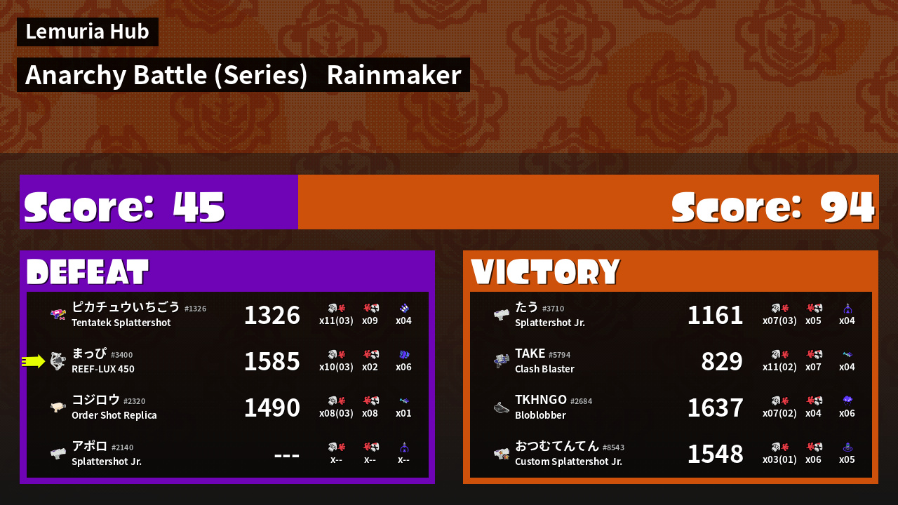 | Mode | Rainmaker - Anarchy Battle (Series) |