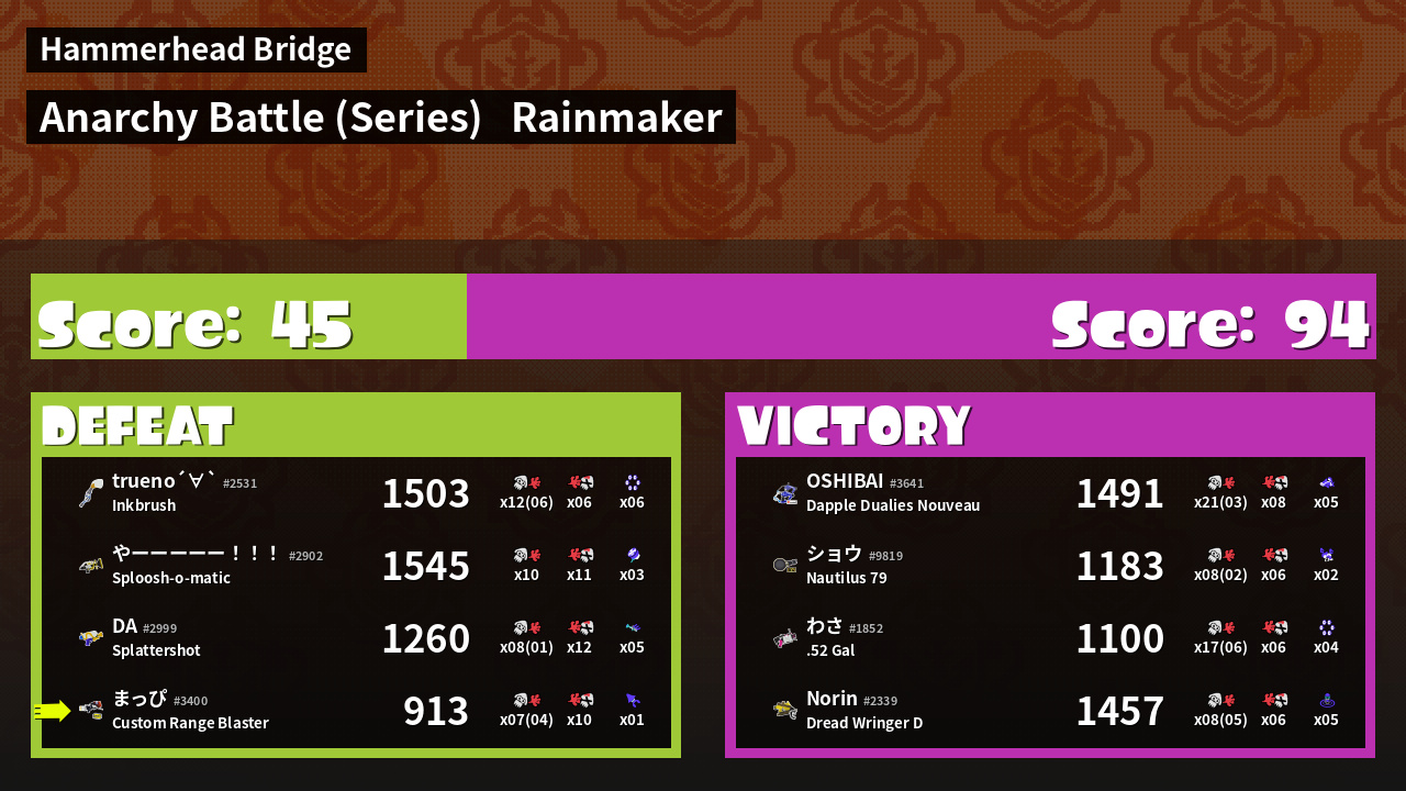 | Mode | Rainmaker - Anarchy Battle (Series) |