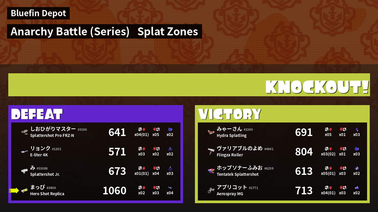 | Mode | Splat Zones - Anarchy Battle (Series) |