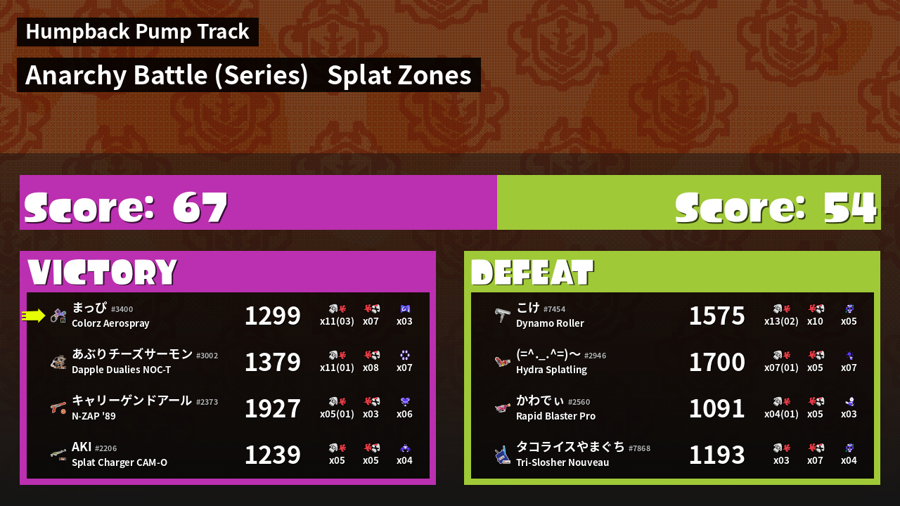 | Mode | Splat Zones - Anarchy Battle (Series) |