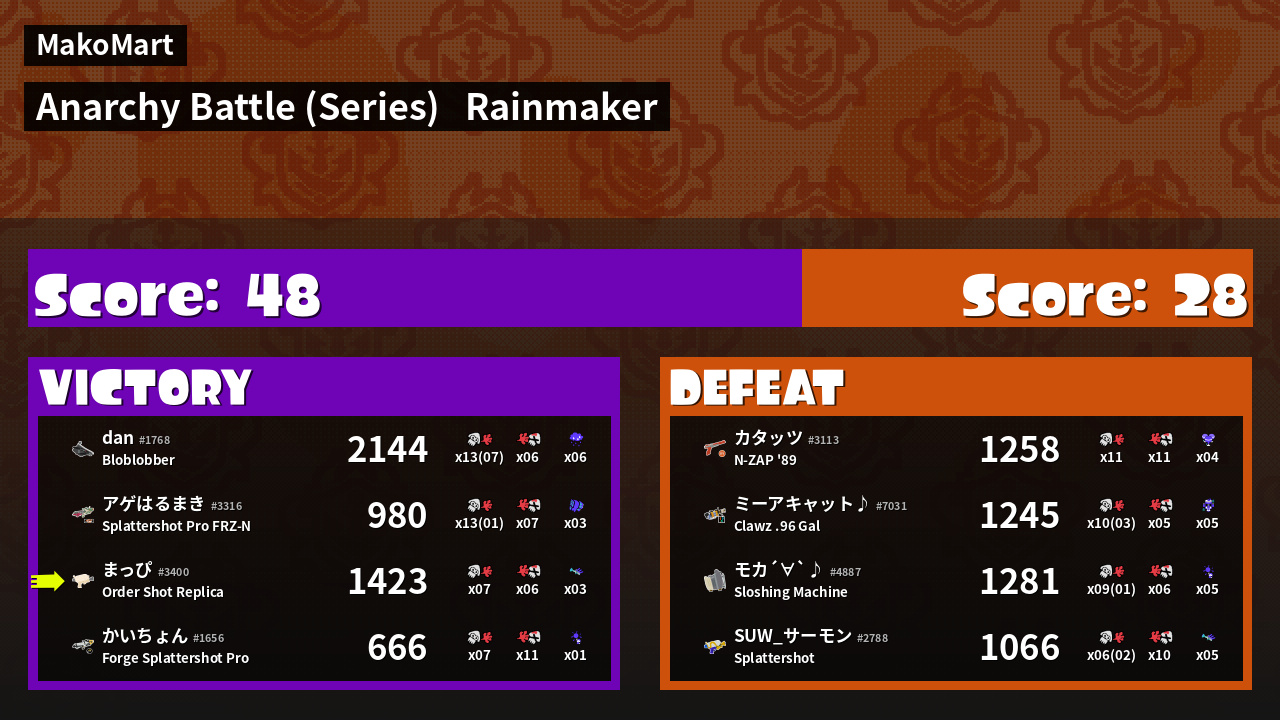 | Mode | Rainmaker - Anarchy Battle (Series) |