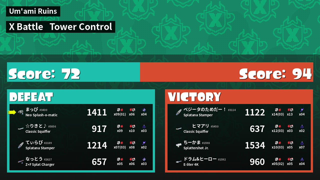 | Mode | Tower Control - X Battle |
