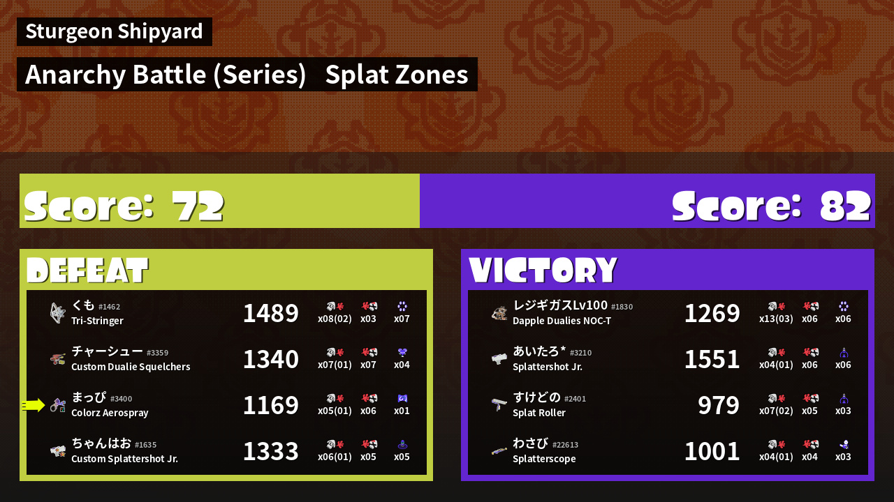 | Mode | Splat Zones - Anarchy Battle (Series) |