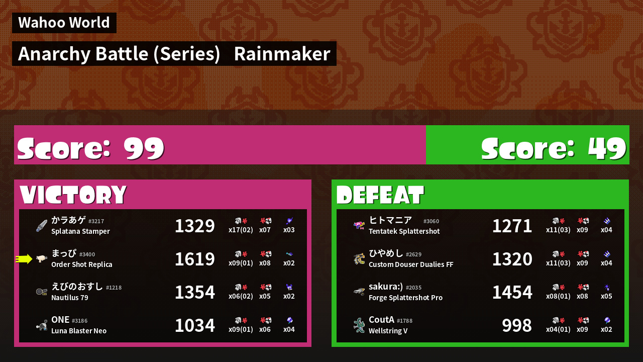 | Mode | Rainmaker - Anarchy Battle (Series) |