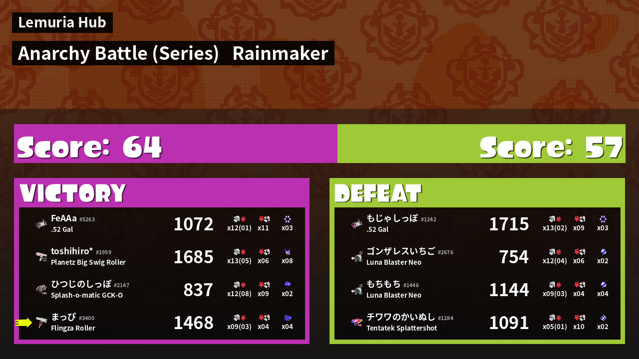 Results of まっぴ's Battle