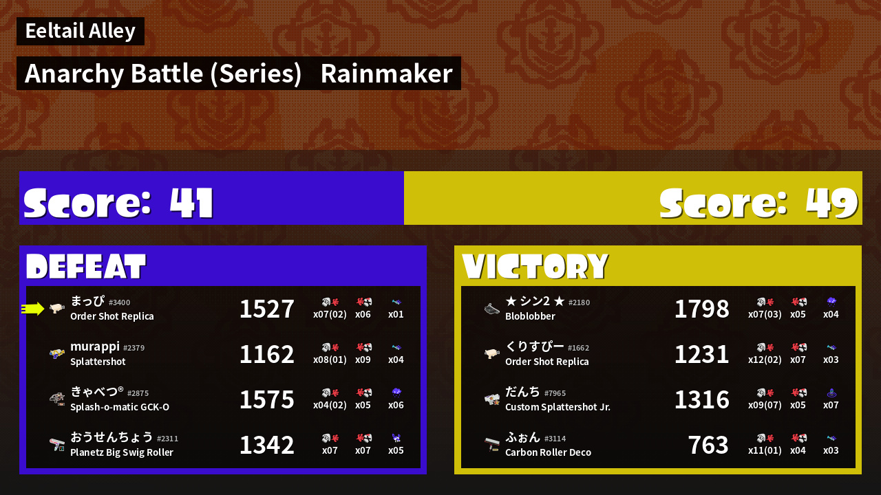 | Mode | Rainmaker - Anarchy Battle (Series) |