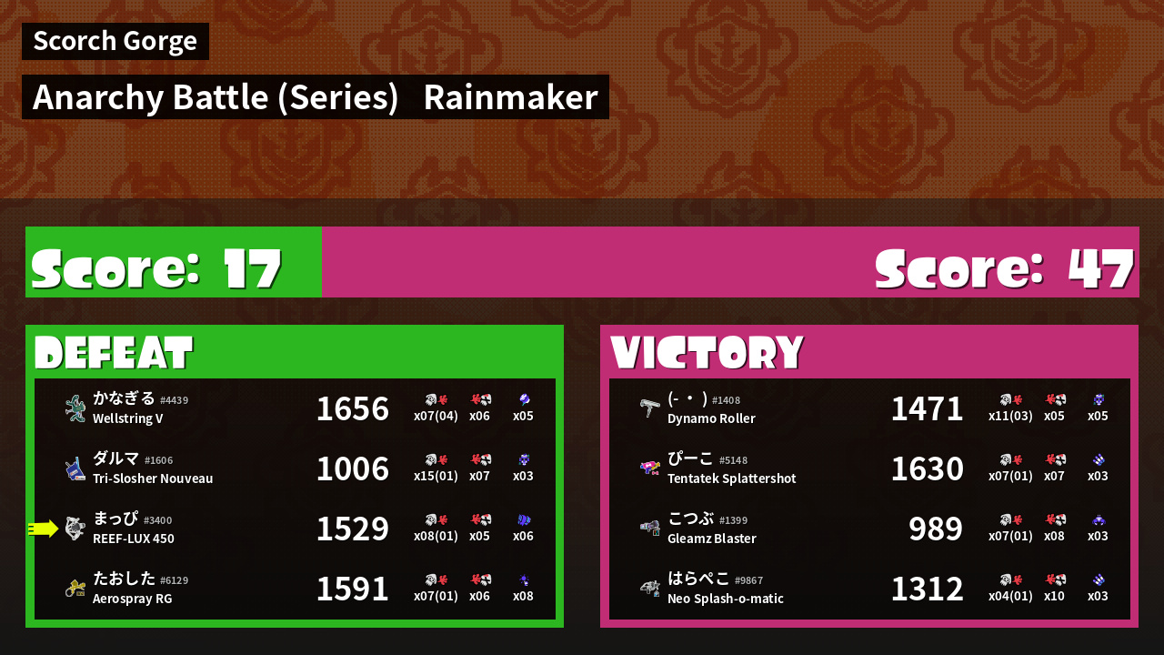 | Mode | Rainmaker - Anarchy Battle (Series) |