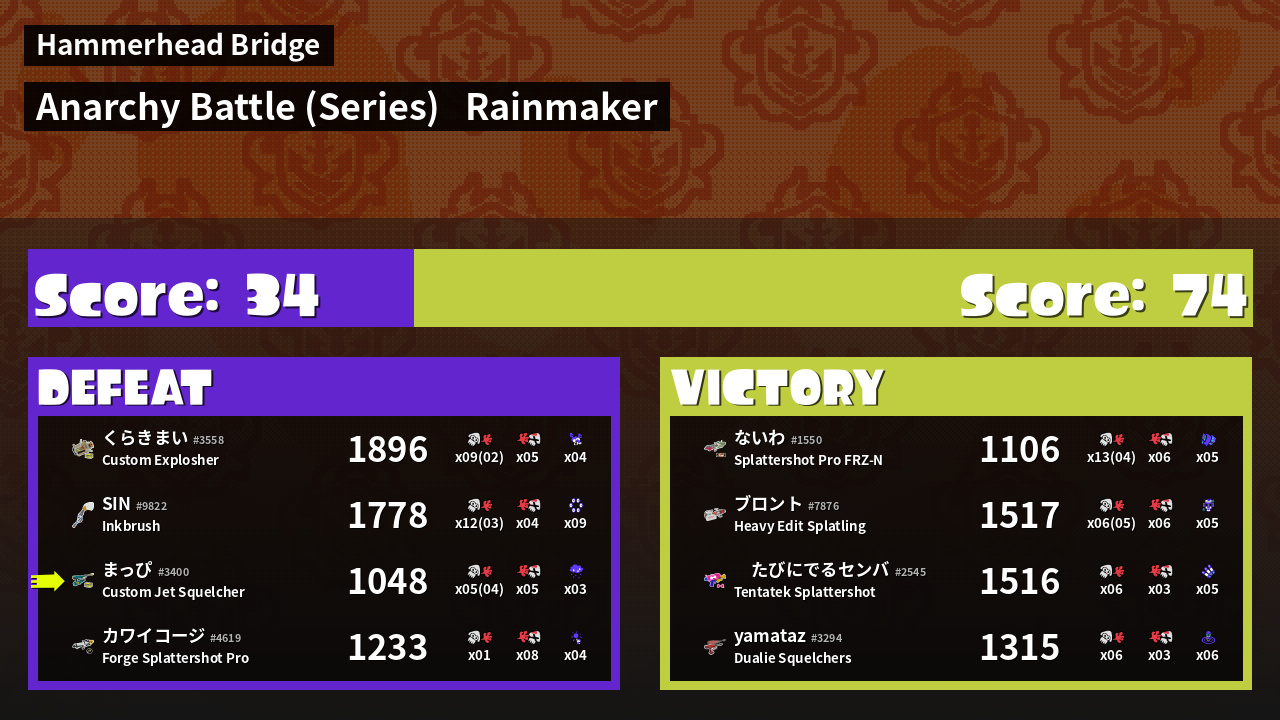 | Mode | Rainmaker - Anarchy Battle (Series) |